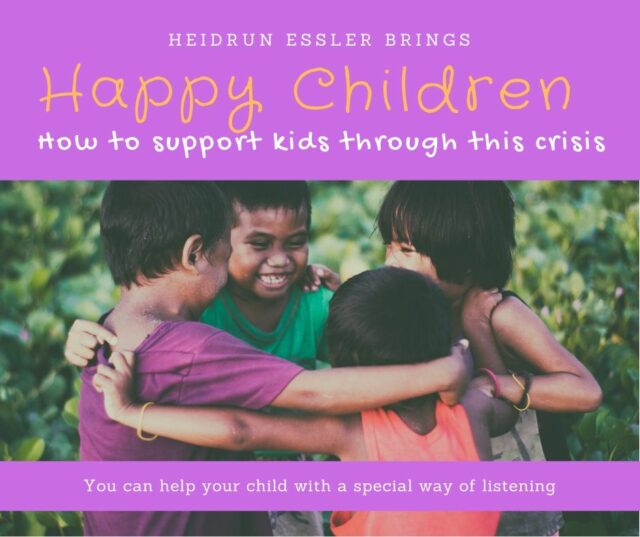 You can help your child through this and any crisis with a special way of listening. In this webinar series, I can show you ways to offer your children easy symbolizations and simple but effective little interventions and exercises. You will learn to deal with the tensions inside and around your children. I incorporate a body-based technique that helps children connect with their inner knowledge and supports them on their process of growing – and this is more than ever important in these challenging days.